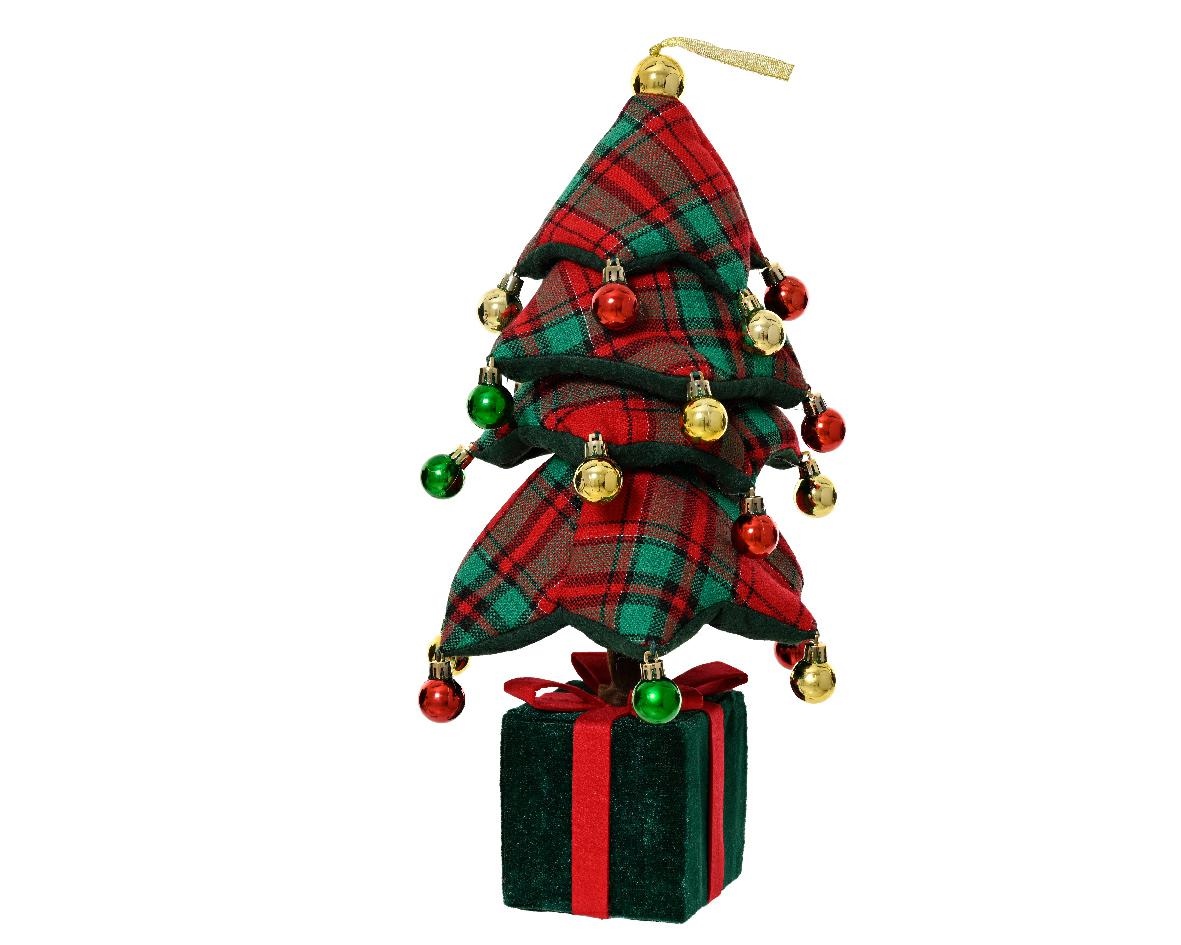 ALBERELLO CON DECORO SCOZZESE E BASE PACCO REGALO H.45X18 CM