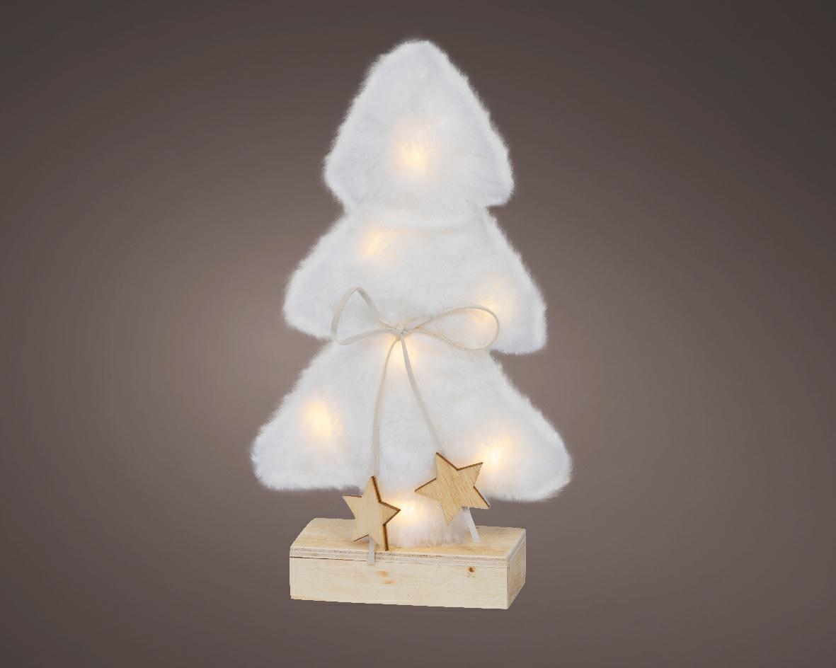 ALBERO BIANCO SU BASE IN LEGNO CON LUCI LED BIANCO CALDO H.24,5X