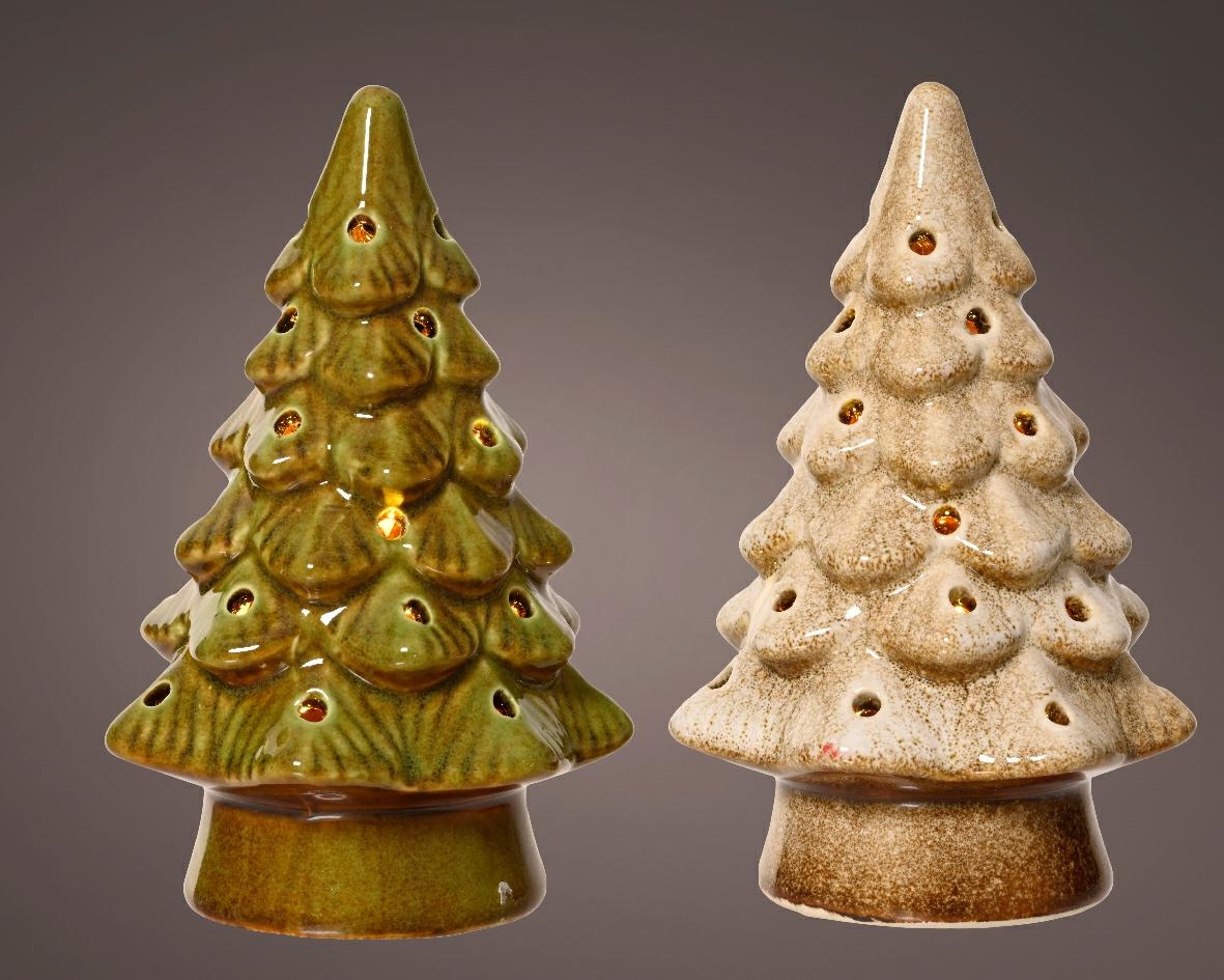 ALBERO CON LED IN TERRACOTTA VERDE/AVORIO LED BIANCO CALDO H.15X