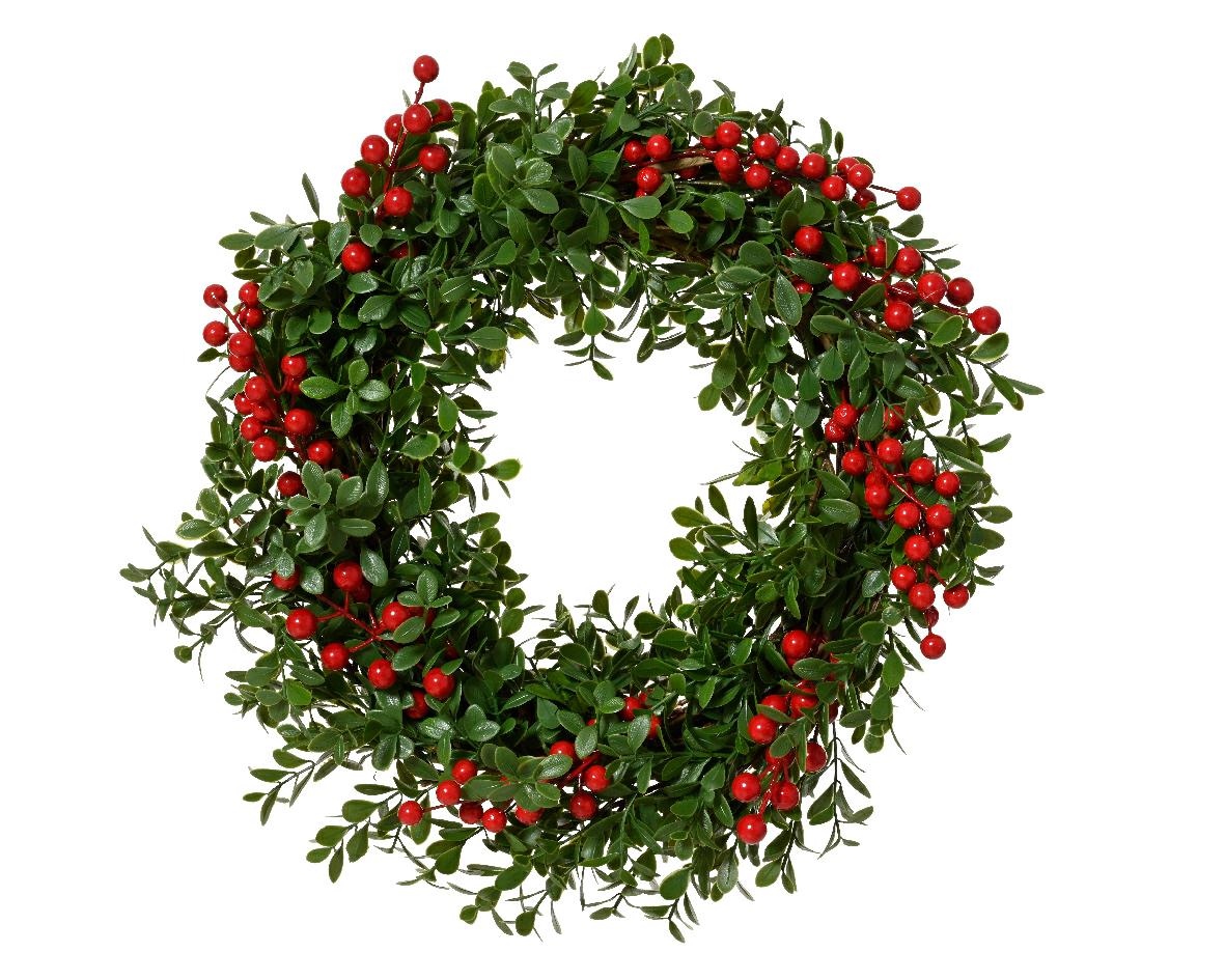 GHIRLANDA FUORIPORTA VERDE CON BACCHE ROSSE D.45XH.12 CM