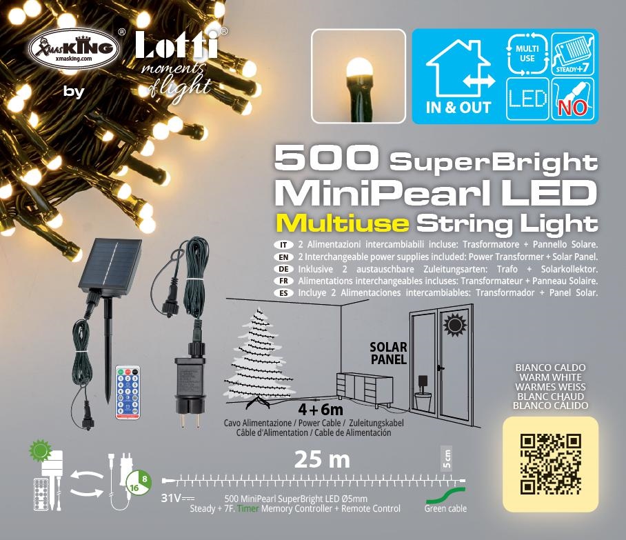 LUCI DI NATALE MINI PERLE 500 LED BIANCO CALDO+PANNELLO SOLARE 2