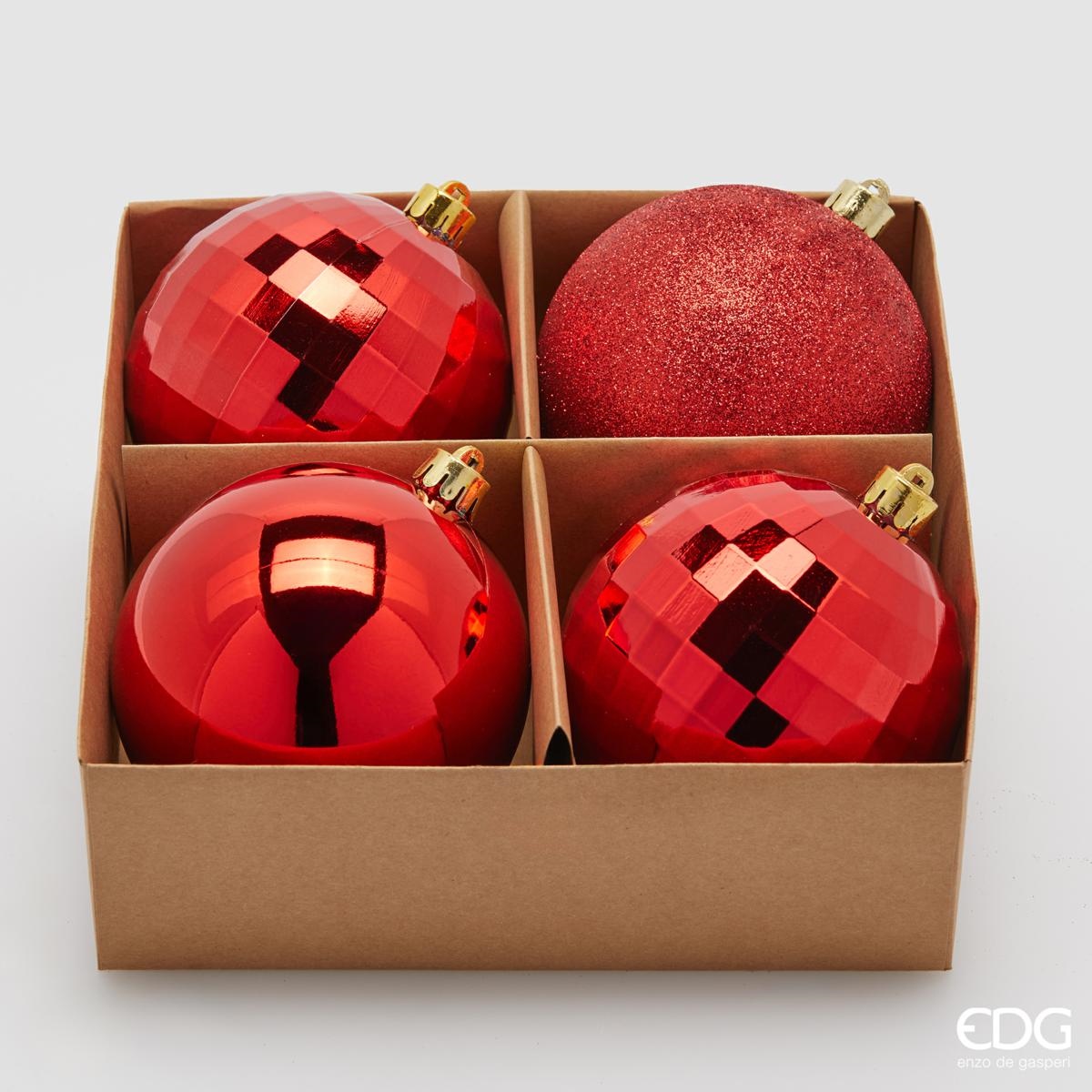 PALLINE DI NATALE ROSSO GLITTER / OPACHE 4 PZ 10 CM