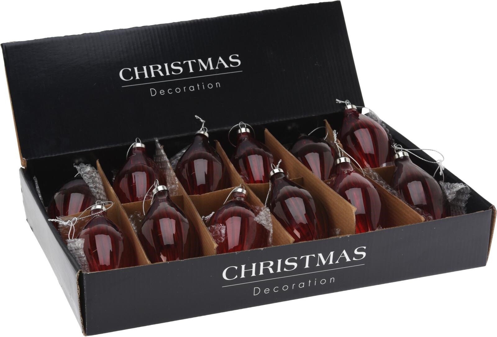 PENDENTE NATALIZIO GOCCIA IN VETRO BORDEAUX TRASPARENTE 12CM ASS